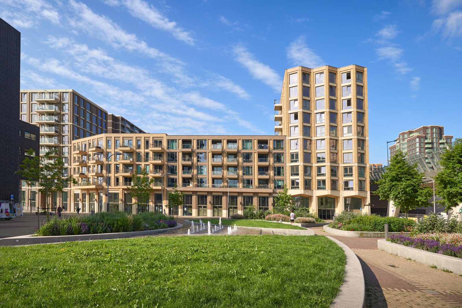 Het complex Paddington is geen saaie, uniforme woonkolos, maar een mooie combinatie van delen die in hoogte verschillen: 1x laag, 2x hoog met in het hart van het gebouw een binnentuin. Op de begane grond vind je commerciële ruimten, de parkeergarage (waar 41 parkeerplaatsen te huur zijn) en (fietsen)bergingen.