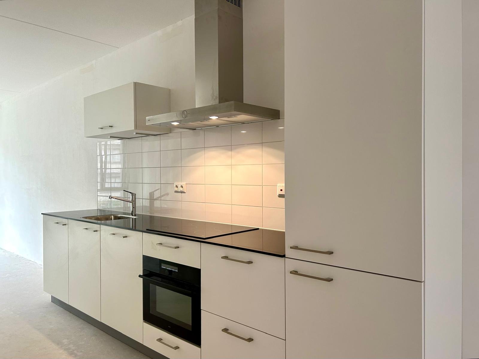 Entree woningen via galerij • Woonkamer met open keuken en deur naar balkon (ca. 5 m2 tot 10 m2) • Keuken in rechte opstelling voorzien van zwart composiet aanrechtblad en inbouwapparatuur, koelvriescombinatie, combimagnetron, inductiekookplaat, wandschouwkap en vaatwasser • Een slaapkamer • Badkamer voorzien van douche met glazen douchewand en wastafel • Separaat toilet • 2 bergingen waarvan 1 voorzien van opstelplaats voor wasmachine en droger • Vloerverwarming • Balkon of terras voorzien van privacy scherm in opaalglas