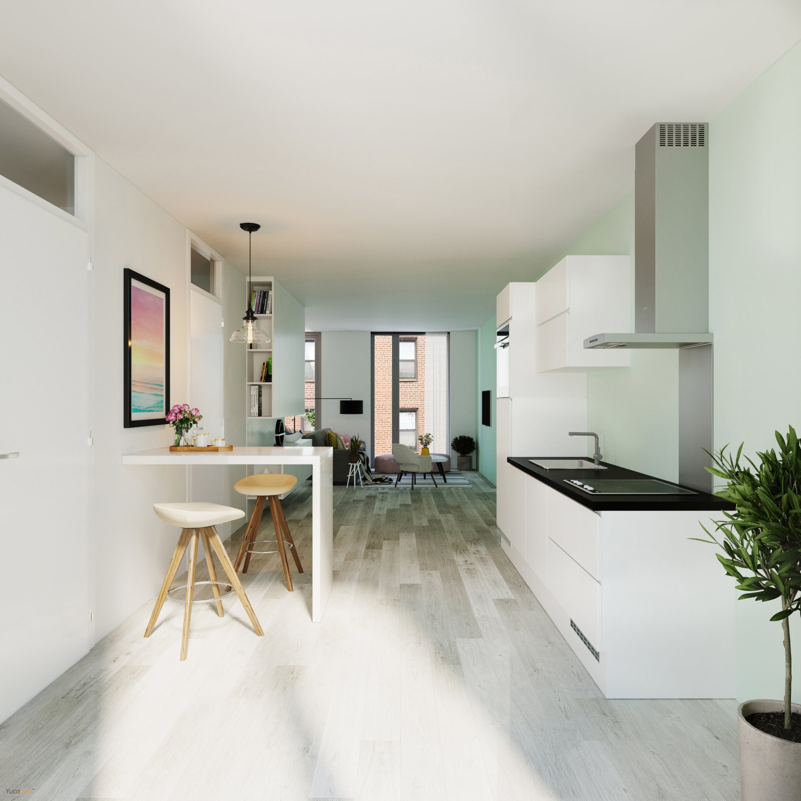 Studio met een woonoppervlakte van 47,5m2. Keuken, voorzien van greeploze kasten en moderne inbouwapparatuur waaronder een afwasmachine, koel-vries combinatie, inductiekookplaat en bakoven. De badkamer heeft een brede wastafel, inloopdouche en designradiator. De ruime studio heeft een separaat toilet en een bergingskast in de woning. Ivens Studio’s is een gemengd koop- en huurwoongebouw, gelegen op IJburg Amsterdam. Tien minuten en je bent met tram 26 in het centrum. Of je pakt even de fiets naar het gezellige Amsterdam-Oost met al haar leuke restaurantjes, kroegjes en koffietentjes. Maar ook op IJburg zelf is genoeg te doen en te beleven.