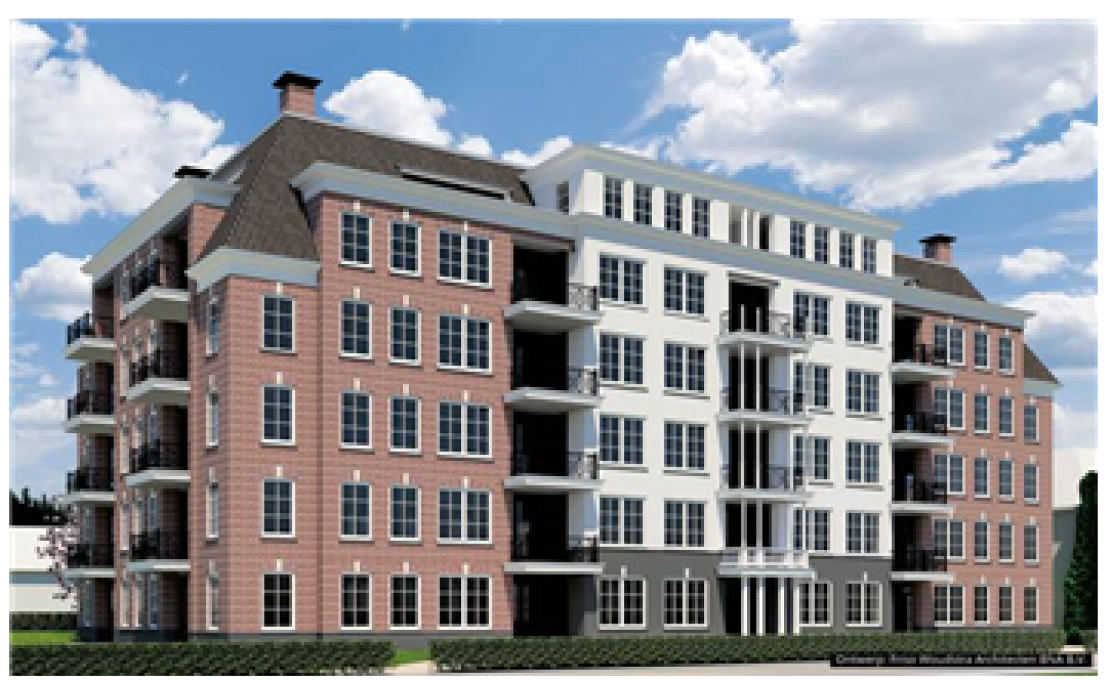 Passend in de omgeving is er door architectenbureau Friso Woudstra Architecten bewust gekozen voor een herkenbare en karaktervolle architectuurstijl die teruggrijpt naar dit verleden. Gedeeltelijk wit gekeimde gevels op een donkere bakstenen plint, keramisch blauw gesmoorde dakpannen en houten kozijnen geven de gebouwen de grandeur van weleer.