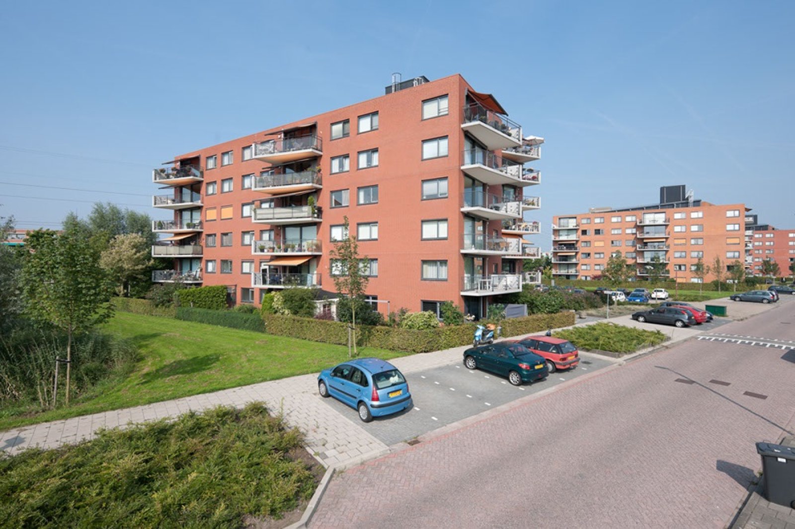 Het appartementencomplex is voorzien van een lift en een intercomsysteem en kenmerkt zich door een lichte centrale entree dankzij het glazen atrium. De ligging is rustig, met veel groen en water in de directe omgeving.