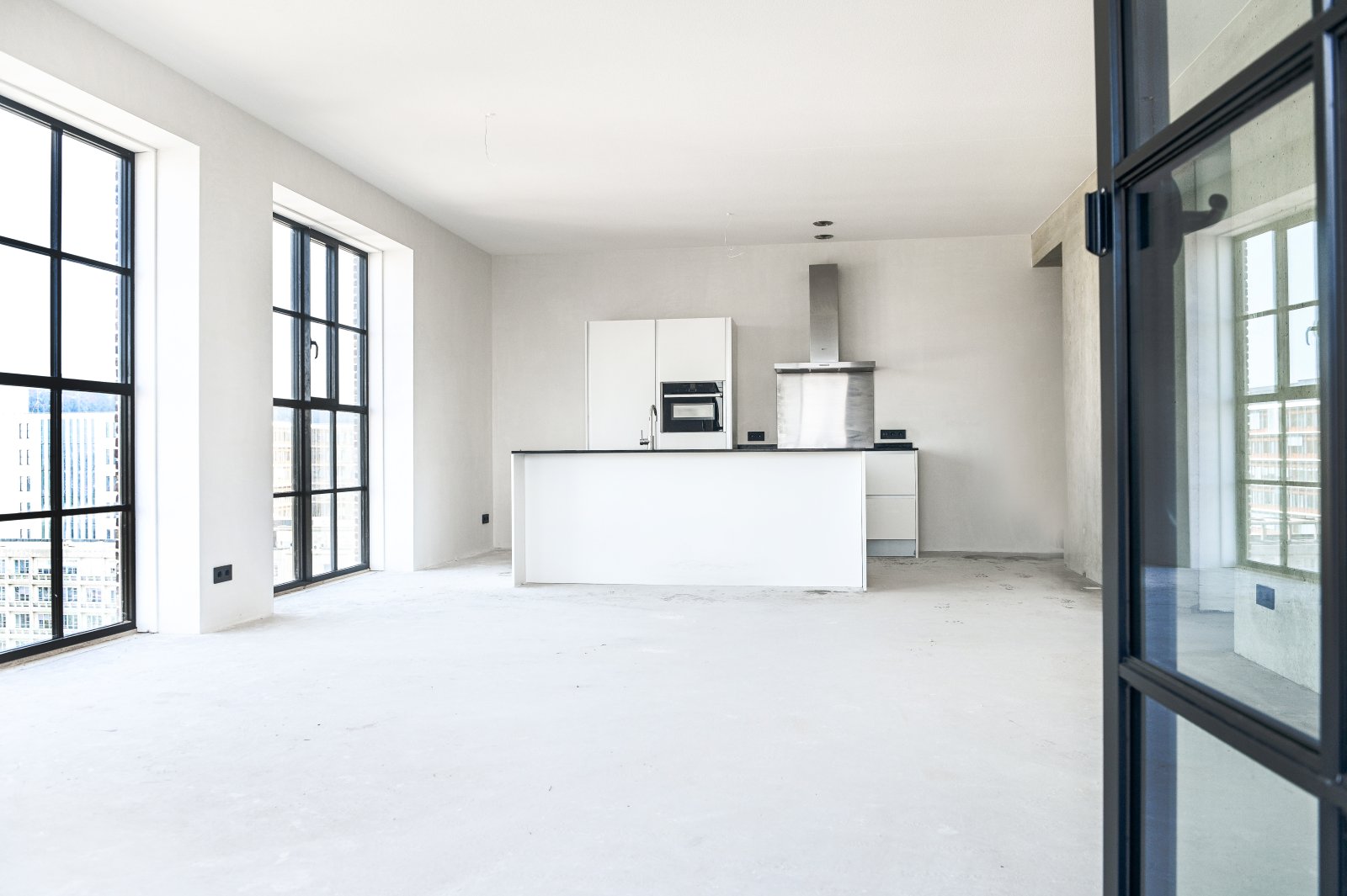 Deze woning heeft een unieke look door de mooie details zoals zwarte stopcontacten en de zwarte raamkozijnen in staallook. De woning heeft een ruime living met een open keuken en een fijn loggia. De moderne, witte keuken is compleet voorzien van Neff inbouwapparatuur. Er zijn 2 slaapkamers in het appartement. De badkamer is uitgerust met luxe sanitair: Een heerlijke regendouche en een wastafel. In de hal bevindt zich een separaat toilet en een handige bergruimte. De vloer is voorzien van vloerverwarming en is afgewerkt met een deklaag waar direct jouw eigen vloer op komt te liggen.